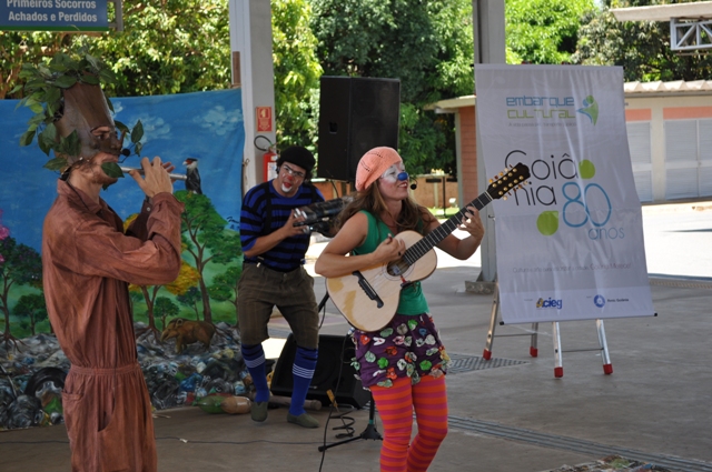 Em comemoração ao aniversário de Goiânia, começou nesta segunda-feira (21) o evento Embarque Cultural, uma iniciativa da Acieg em parceria com a Rede Metropolitana de Transportes Coletivos (RMTC). A Cia Os Kaco e o Projeto Boca do Lixo se apresentaram para os clientes do transporte coletivo que passavam pelo Terminal Cruzeiro no início da tarde, começando com músicas tocadas em instrumentos feitos de materiais reciclados. O lúdico ficou por conta da apresentação de malabares e tecido acrobático, que encantou as crianças que assistiam e interagiam com os artistas.