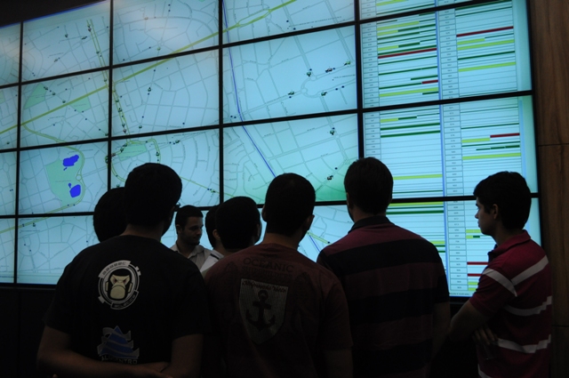 Depois de conhecer a Central de Controle Operacional e a Central de Segurança de Transportes, professor e estudantes da disciplina Operação e Organização de Transportes Públicos comentaram sobre a influência do trânsito na prestação deste serviço